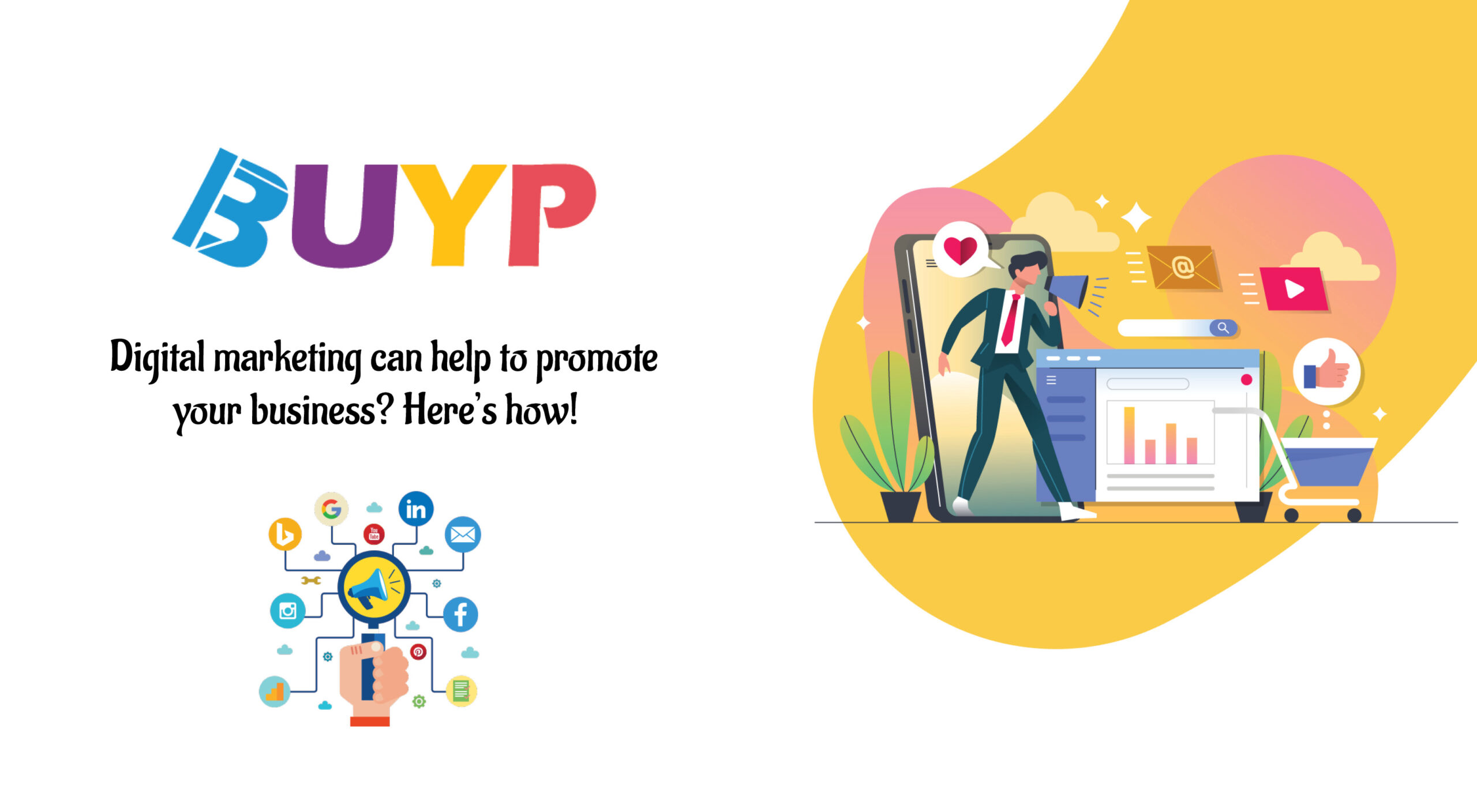 Digital marketing services give businesses of all sizes a chance to promote their brand 24/7 at a low cost. Engage your target customer at the right time on the right platform! Digital marketing benefits both large, medium, and small businesses by giving access to the mass market at an affordable price. Buyp Technologies is a digital marketing company that helps you expand your niche market reach to offer goods and services to your target customers, irrespective of time differences or location.